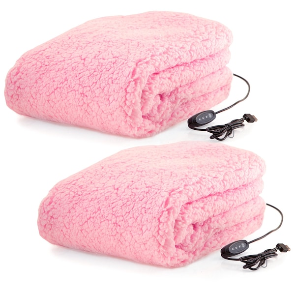 Heated Blanket 2-Pack - USB-Powered Throw Blankets for Winter Car Accessories by Pink