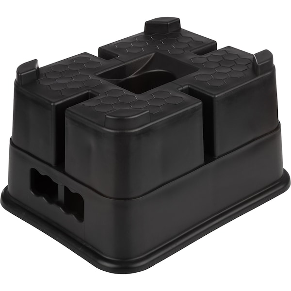 - •Dimensions: (L) 11.2 x (W) 8.8 x (H) 6.5-inches; Center Hole: 2.5-inch Diameter, 2.5-inch Depth; Weight: 3.75lbs; RV Stabilizer Blocks Individual Capacity: 15,000lbs
