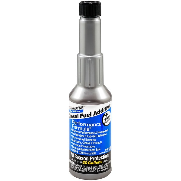 Diesel Fuel Additive, Container Type Bottle, Container Size 8 fl oz, Compatible Engine Type Diesel Engines, Engine Cycle Not Applicable, Recommended Dilution Not Applicable, Color Amber, Standards Not Applicable, Compatible Fluid Type Diesel Fuel, Product Form Liquid, Additives Included Cetane, Detergents, Features Contains no Alcohol, Meets all Engine Fuel System requirements and will not Harm Exhaust Aftertreatment Systems, Reduces Emissions, Reduces Fuel Consumption, Reduces Wear