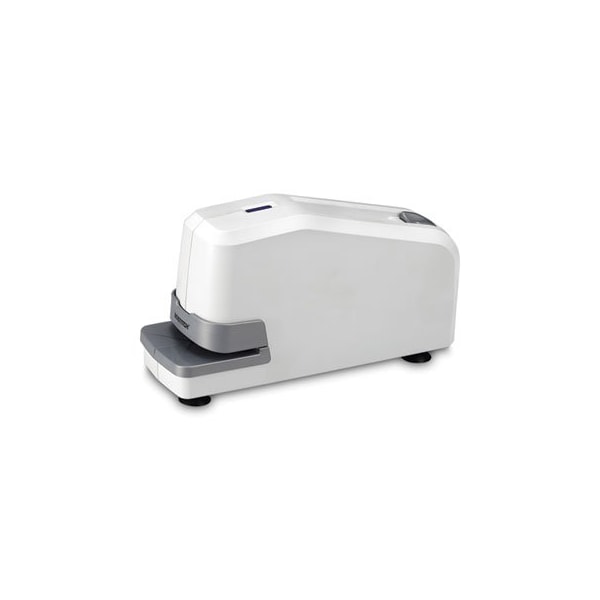An electric stapler designed for fast, reliable performance. Impulse Drive technology staples in just a fraction of a second, while No-Jam technology prevents staple jams for smooth, rapid stapling. Refill alert light indicates when staples need to be reloaded, and push-button FastLoad system makes staple refill quick and easy. Convenient staple storage compartment keeps extra staples in the unit for immediate refill. High Capacity Stapling: No; Flat Clinch Plate: No; Tacking: No; Staple Capacity: Full Strip 210 Staples.