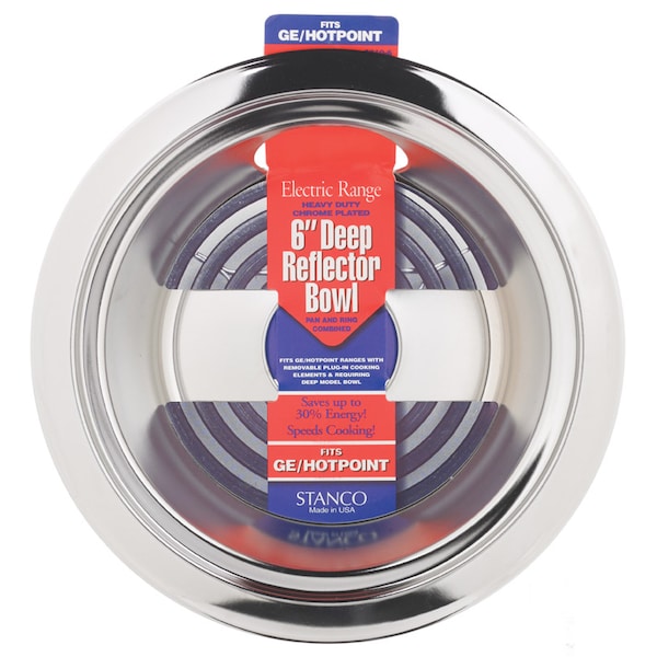 6" Heavy Duty Chrome Deep Bowl. Fits GE & Hotpoint Ranges Made Before 1990 Requiring Deep Model Bowl with Plug in Element