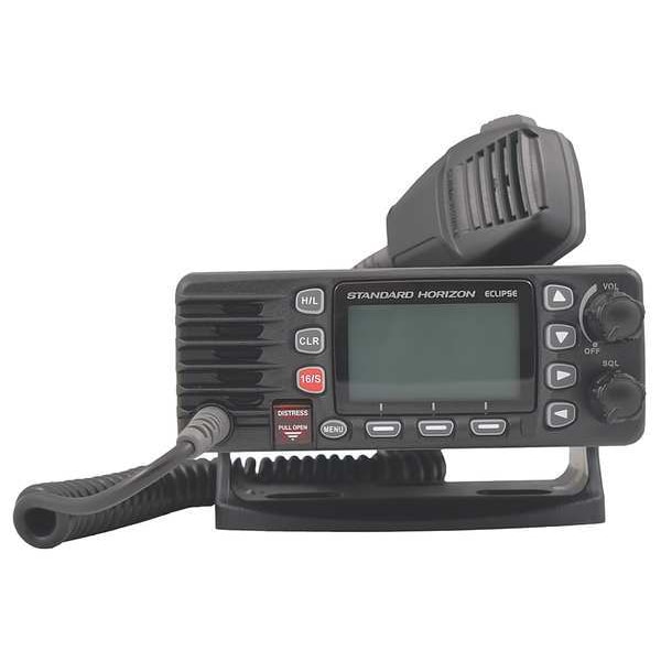 Vehicle-Mounted Two-Way Radio, Band Type VHF, License Required Yes, Programming Requirements Pre-Programmed, Radio Transmission Analog and Digital, Number of Channels 66, Minimum Frequency 156.025 MHz, Maximum Frequency 161.6 MHz, Output Power 25 W, Display Type Alphanumeric, Radio Series Eclipse, Repeater Capable Yes, Channel Scan Yes, Audio Output 4.5 W, Radio Application Marine, Product Type Vehicle-Mounted Two-Way Radio, Radio Type Vehicle-Mounted, Digital Radio Technology DSC