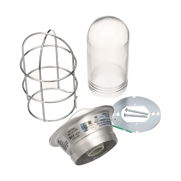 Round Light Fixture W/ Plastic Coated Thermal And Shock;Resistant Glass Globe And Wire Guard;Uses New Style Snap-In Socket # 38-1325;120V 100Watt Max Bulb(Not Included);Old Style Socket Is # 38-1326