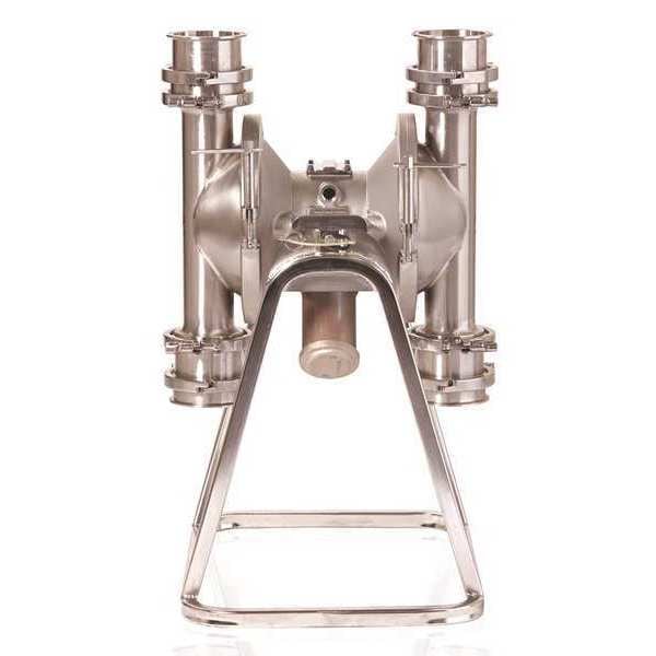 Double Diaphragm Pump, Air Consumption (Maximum) 180 scfm, Air Intake Connection Size 1/2 in, Air Intake Connection Type FNPT, Check Seat Material 316 Stainless Steel, Diaphragm Material PTFE, Flow Rate (Maximum) 150 gpm, Manifold Connection Multiport, Media Discharge Connection Size 3 in, Media Discharge Connection Type Tri-Clamp, Media Discharge Location Center, Media Intake Connection Size 3 in, Media Intake Connection Type Tri-Clamp, Media Intake Location Center