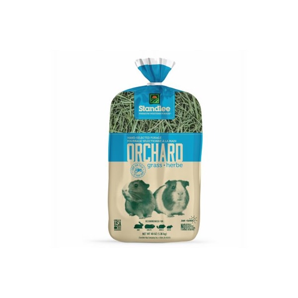 Small Animal Orchard Grass, 48 oz Standlee Premium Western Forage Premium Orchard Grass can be fed to rabbits, guinea pigs, hamsters, gerbils, chinchillas, prairie dogs and other herbivores Feed Standlee Premium Orchard Grass, along with the vitamin and mineral fortified feed specific to these animals, to meet essential nutrient requirements Standlee Premium Orchard Grass forage can be fed at a minimum rate equal to 10 of the total diet Free choice feeding may be offered, but Standlee Premium Orchard Grass is NOT intended to be the only component of the diet Place forages in a hopper, bin or loose Remove any uneaten forage if it becomes wet, damp or soiled
