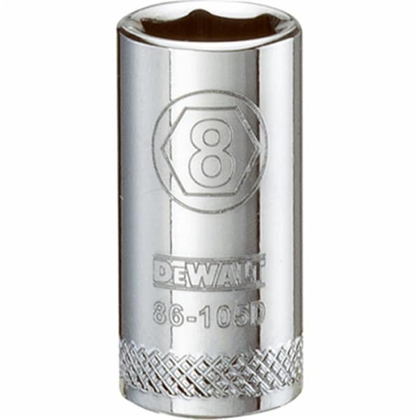 Finish: Polished Chrome. Material: Vanadium Steel. Number of Points: 6. Drive Size: 0.25 in. Socket Size: 8 mm. Country of Origin: Taiwan. Weight: 0.72 lbs.