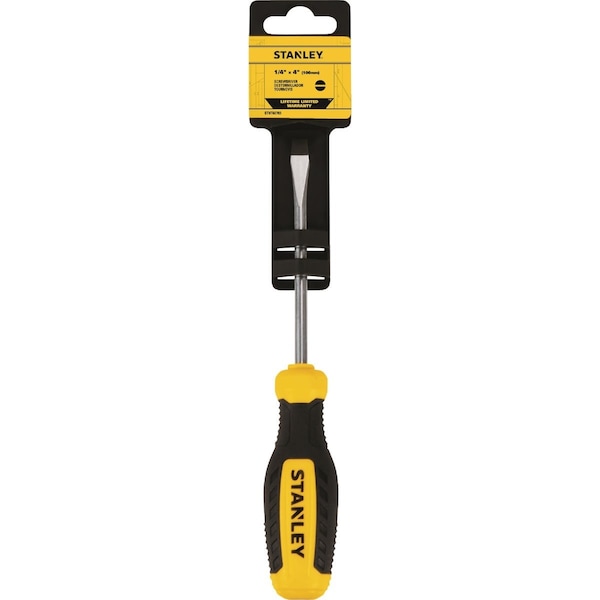 Work comfortably with the Stanley Slotted Screwdriver complete with a tri-zone bi-material handle ideal for precision torque and speed applications. This durable screwdriver is designed with strong steel blades a chrome finish that offers corrosion resistance and black phosphate tip to help improve grip on the fastener for a reliable tool you can depend on.