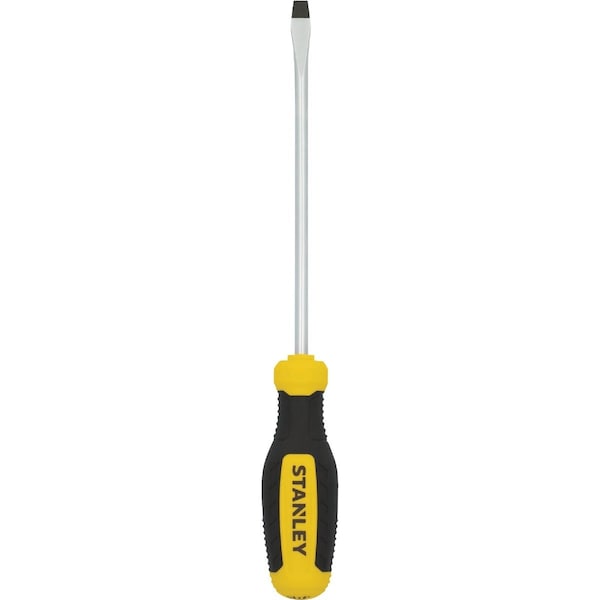 Work comfortably with the Stanley Slotted Screwdriver complete with a tri-zone bi-material handle ideal for precision torque and speed applications. This durable screwdriver is designed with strong steel blades a chrome finish that offers corrosion resistance and black phosphate tip to help improve grip on the fastener for a reliable tool you can depend on.