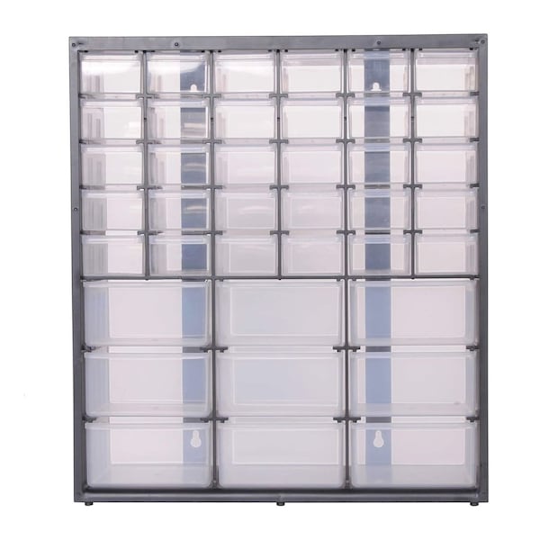 Stanley's 39 mixed drawer bin system is ideal for small parts organization. The drawers are transparent providing good visibility to content stored in each drawer. Mount this bin system to the wall or stack one on top of another to keep your work space clear of clutter.