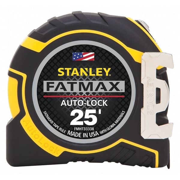 Tape Measure, Features 360 Degrees Attachment, Auto Locking, Detachable Hook, Standout, Case Material ABS Plastic with Rubber Grip, System of Measurement SAE, Graduation Marks 1/16 in, Tip Style Nonmagnetic Double Hook, Zero Point Location Hook End, Blade Length - Metric Not Applicable, Blade Length - SAE 25 ft, Blade Material Steel, Blade Width 1 1/4 in, Blade Return Type Automatic, Case Color Black, Yellow, Lock Type Automatic, Graduation Units Feet, Inches, Standout Length 11 ft