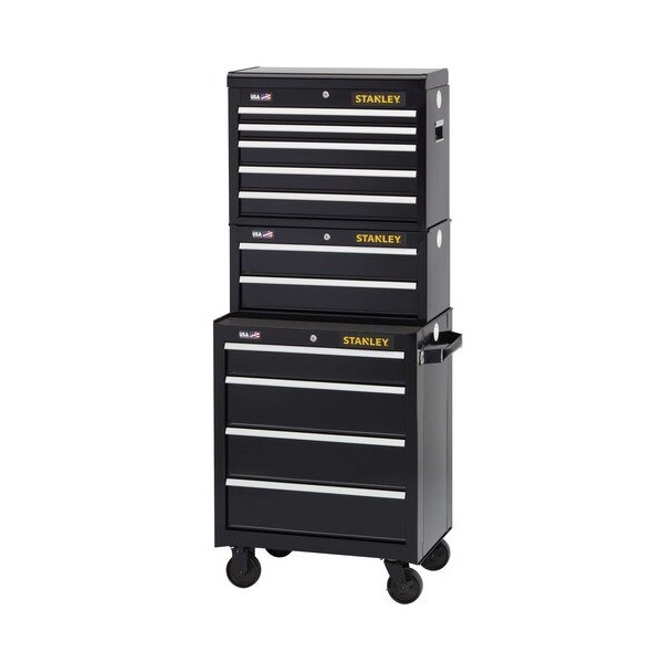 This 26-inch wide 2-Drawer Middle Tool Chest is constructed of double-wall steel for strength and durability. It has two 85-pound load capacity, full-extension ball-bearing drawer slides, and a keyed internal locking system to safeguard tools. Recommended with this unit are our 300 Series 26 in. W 5-Drawer Tool Chest (STST22655BK) and 300 Series 26 in. W 4-Drawer Rolling Tool Cabinet (STST22744BK), sold separately.Look no further than our 300 Series Metal Tool Storage line for your garage tool storage needs. Choose from a variety of sizes in top and middle tool chests, rolling tool cabinets, and mobile workbenches, all of which are made of 18-22 gauge steel with aluminum drawer trims. They'll help keep you organized and fit our mechanic tools sets, and other hand tools and accessories.