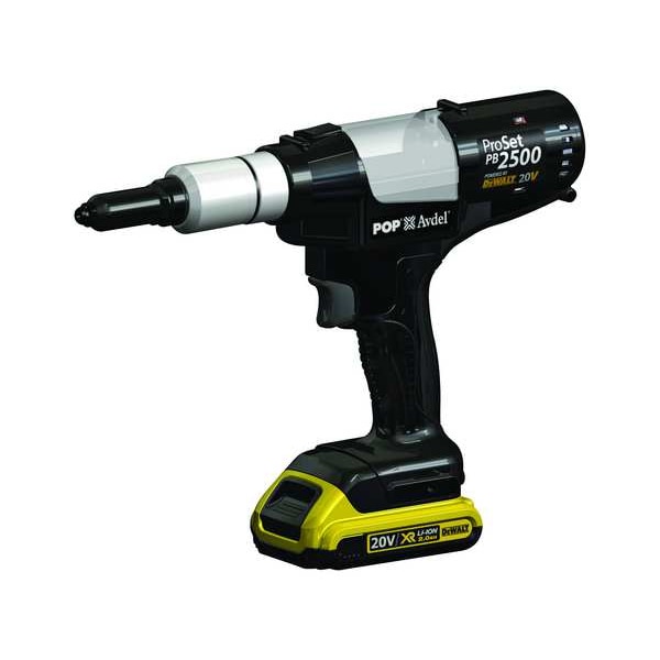 Rivet Tool, Cordless Tool Kit Contents (1) Bare Tool, (1) Battery, (1) Charger, Cordless, Brushless Motor Yes, Voltage 20 V DC, Pulling Force 1,911 lbf, Stroke Length 15/16 in, Drive Type Worm Drive, Rivet Type Blind Rivet, Nose Length 2 3/4 in, Nose Diameter 25/32 in, Blind Rivet Dia. - Aluminum 3/32 in, 1/8 in, 5/32 in, 3/16 in, Blind Rivet Dia. - Stainless Steel 3/32 in, 1/8 in, 5/32 in, 3/16 in, Blind Rivet Dia. - Steel 3/32 in, 1/8 in, 5/32 in, 3/16 in, Number of Batteries Included 1