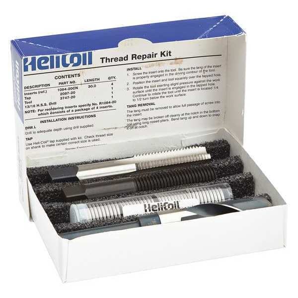 Thread Repair Kit, Insert Types Included Helical Inserts, Compatible Material Metal, Drill Bit Sizes Included 13/16 in, Finish Plain, Helical Insert Type Free-Running, Insert Length 30 mm, Insert Material Stainless Steel, Material Grade/Class 18-8, Maximum Hole Diameter Not Applicable, Number of Inserts 4, Number of Pieces 8, Number of Sizes 3, System of Measurement Metric, Tang Style Tanged, Tap Sizes Included M20-2.50, Thread Direction Right Hand, Thread Size M20-2.50, Thread Type Coarse