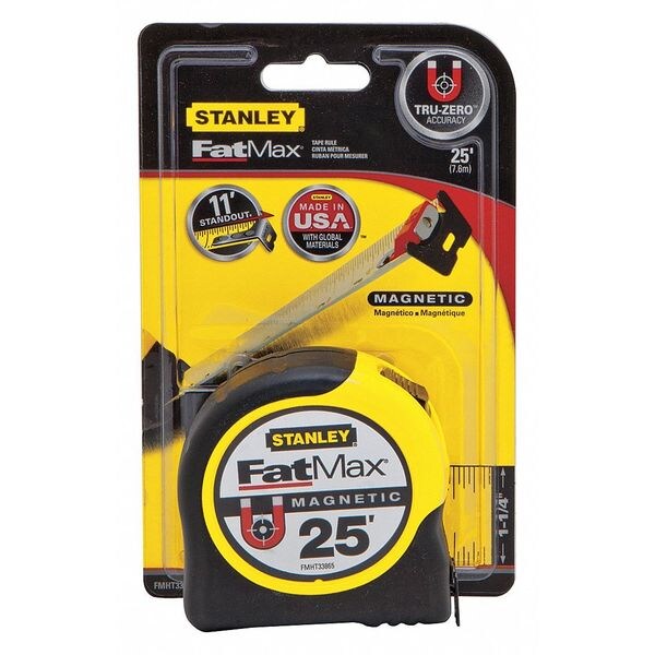 Tape Measure, Features Magnetic Hook, Case Material High Impact Chrome ABS Plastic with Molded Rubber Grip, Blade Material Steel, Blade Width 1 1/4 in, Case Color Yellow, Lock Type Side, Case Type Box, Belt Clip Yes, Blade Coating Mylar, Blade Color Yellow