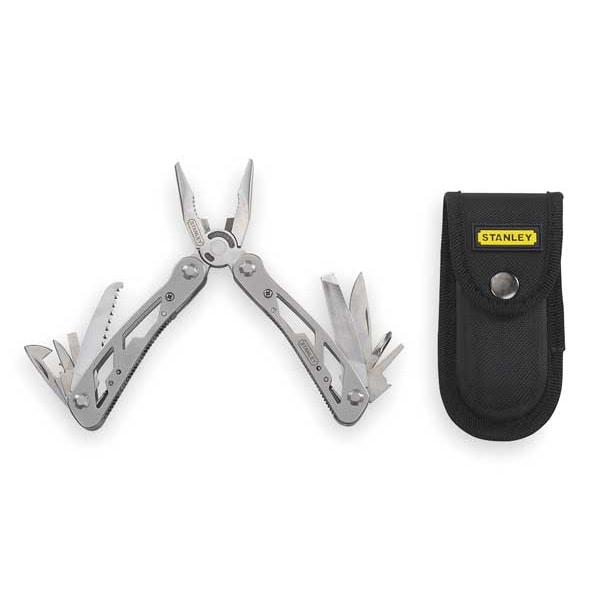 Multi-Tool, Blade Edge Type Smooth, Features Curved and Long Nose Pliers, Wire Cutter, Saw, Slotted Screwdrivers 1/8 in, 5/16 in, 1/4 in, Small and Large Knife Blades, Bottle Opener, File, Phillips(R) Screwdriver, Handle Color Natural Wood, Handle Material Stainless Steel, Handle Style Straight