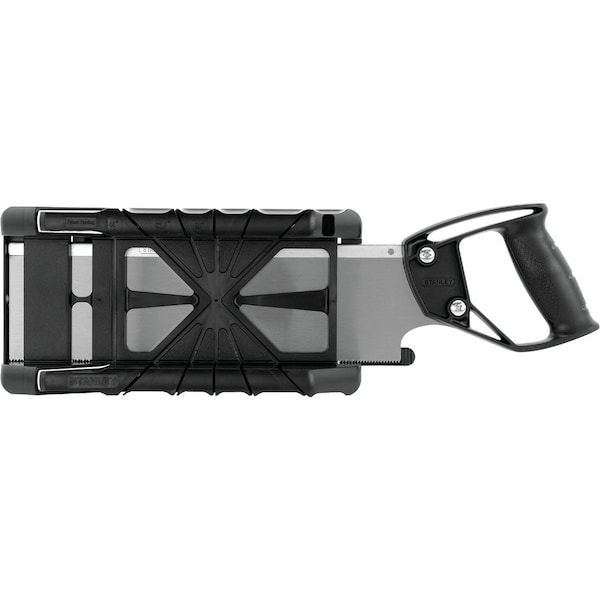 Lightweight high-impact ABS plastic construction for longer life. Holes in base for fastening to a work bench. Patented storage system holds all Stanley 12 x 14 backsaws. Accepts either panel or backsaws of different thickness. Preset 22-1/2 deg. 45 deg. and 90 deg. angles. Depth capacity of 2-1/4 using the featured backsaw.
