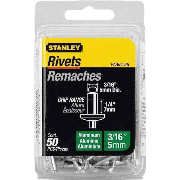 Pop Rivet, Reusable, 1-1/2 in L, Aluminum, 50PK