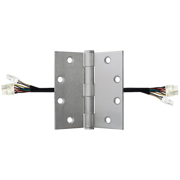 Five Knuckle Concealed Switch Concealed Conductor Ball Bearing Architectural Hinge, Steel Full Mortise, Standard Weight, 4-1/2-in by 4-1/2-in, Square Corner, Right-Handed, 4-Wire, Satin Chrome