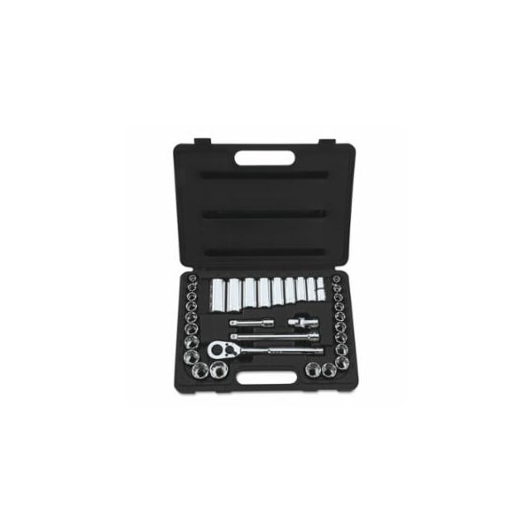 Socket Set, 34-Pc, 3/8 in, Standard and Deep, 12-point