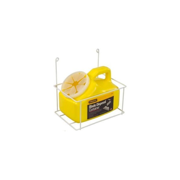 STANLEY® 11-081, BLADE DISPOSAL CONTAINER WITH WIRE RACK HIGH IMPACT, PUNCTURE RESISTANT CONTAINER. SNAP-ON LID LOCKS TIGHT FOR SAFETY AND IS TETHERED TO THE CONTAINER. CONTAINER CAN BE PLACED ON A FLAT SURFACE OR FIXED TO A WALL WITH THE METAL RACK. MUST BE 18 YEARS OR OLDER TO PURCHASE THIS PRODUCT