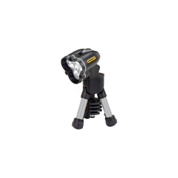 STANLEY® 95-111, LED MINI TRIPOD FLASHLIGHT TRIPOD DESIGN PROVIDES CAPABILITY FOR HANDS-FREE USE. MAGNETIZED AND ANODIZED ALUMINUM TRIPOD LEGS FOLD TO BECOME A REGULAR HAND-HELD FLASHLIGHT. 100° ROTATIONAL HEAD WITH SHATTER-RESISTANT LENS FOCUSES LIGHT WHERE IT'S NEEDED MOST. THREE 5 MM BRIGHT WHITE, LONG-LASTING LEDS. SLIP-RESISTANT RUBBER GRIP AND FEET. ON/OFF SWITCH. COMPLIANT WITH ANSI, CE AND ROHS STANDARDS.