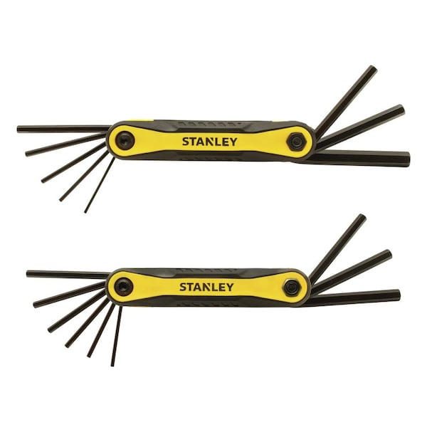 The STANLEY® 2 pk Folding Metric and SAE Hex Keys feature durable composite construction. The rubber side inserts allow for a secure grip and the chamfered edge helps guide the wrench for a smooth, easy entry of the hex key. It has size markings printed on the hex key body for easy identification.