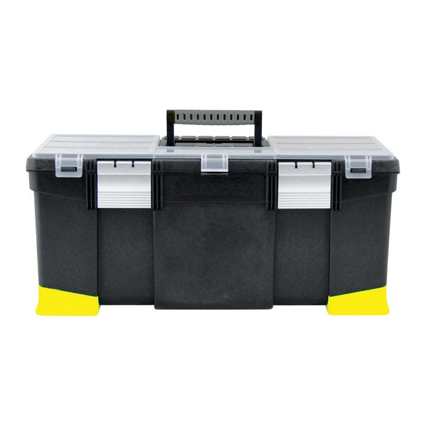 This Stanley tool box has removable dividers for customized organization of tools and parts. The unique shape allows for easy access to both hand and power tools. The 1 hand latch operation enables the easy connecting and detaching functionality. User can store small parts and accessories in the lid organizer. Stanley products are built to last.