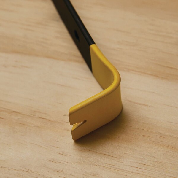 Contoured bar for pulling nails prying and lifting. Forged high-carbon steel for strength and durability. Polished and beveled cutting edges. Beveled nail slot at both ends. High-visibility powder-coated finish.