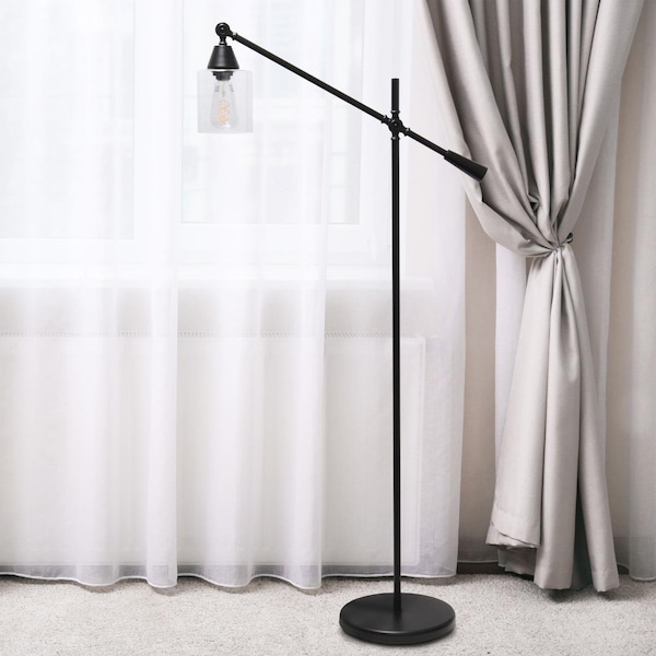 Elegant Designs Pivot Arm Floor Lamp with Glass Shade, Black