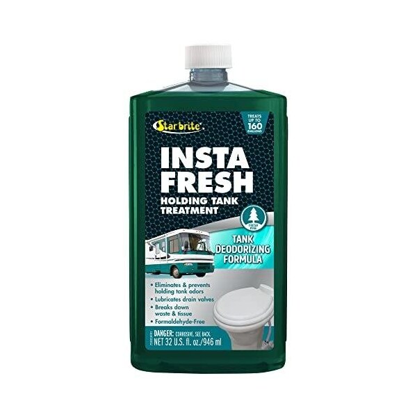 Star brite Instant Fresh Toilet Treatment controls holding tank odors and gassing It also keeps holding tank walls and drain lines free from debris while lubricants prevent drain valves from sticking Ideal for all RV, marine, and portable toilets The formaldehydefree formula can be pumped out at any dumping station Star Brite 072832