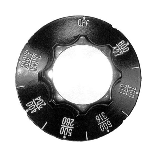 Thermostat Knob, [ 2-1/4" Dia ] [ Off-800-300 F ];[ 427-149 C ] Black W/White Print.;[Mount .187"] [Flat Position Up],;Used With Thermostat # 46-1057;Southbend Ra36C1W, Ra36C7W;Toastmaster Oven/Range 36" All Purpose Range W/12" X 24";Grill:20A2-(C,M,R), 20B2-(C,M,R).;12" All Purpose Range: 20Xa2-(C,M).;Super "T" Heavy Duty Range: Ra36D(1,2), Ra36C1 & 2, D1 & 2,;M1 & 2.