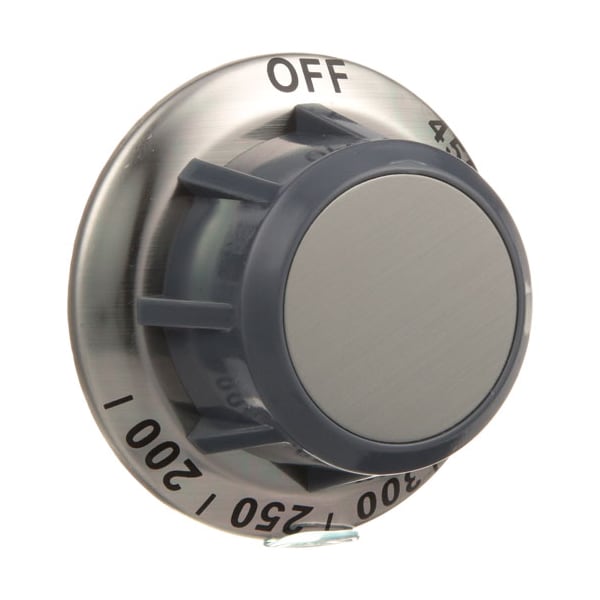 Grey & Silver T'Stat Knob "Wells";[ 2-3/8" Dia ] [ Off-450-200] [Mount .187" ] [Flat Down ] ;Wells Grill G13, G15, G19, G23, G60, G136, G156, ;G196, G236, G246, G606, Jg236, Jg606.