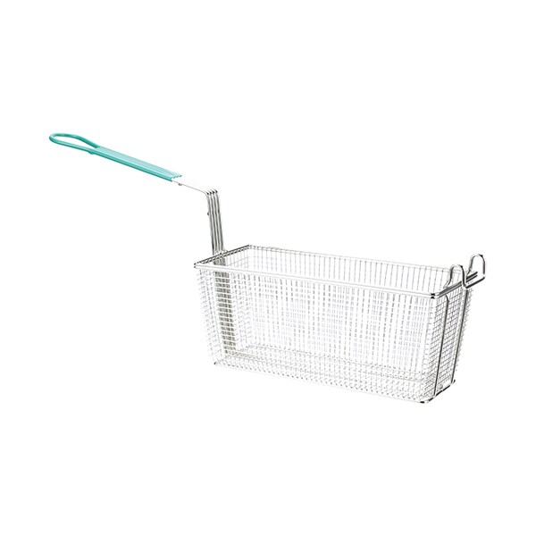 Twin Fryer Basket W/ Green Coated Handle, Front Hook,;13-1/4" Long X 5-3/4" Wide X 5-3/4" Tall,;Frymaster Fryer Fm35, Gf14, J2X, Mj(35,35G, 235).;Prince Castle Fryer;Star Fryer Em14 & Em14Dl & Em40 & Em40Dl;All With S/N 1450521 & Up, M14, M14(D,Dl), M43.