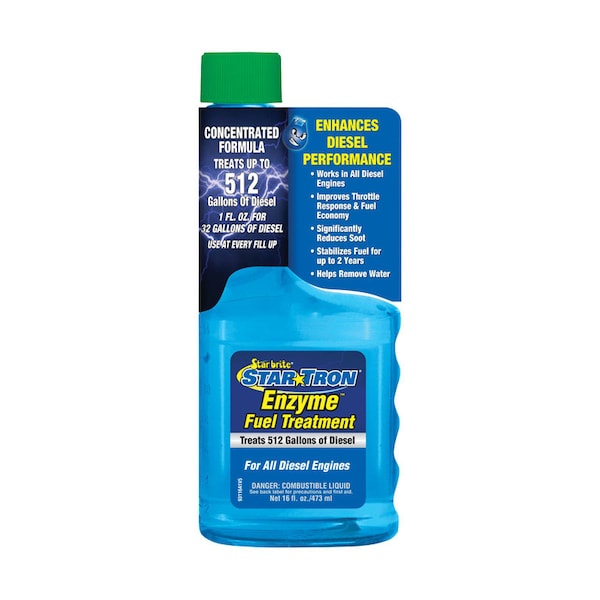 Star Tron Enzyme Fuel Treatment is a multi-functional fuel additive which uses a unique enzyme technology that allows all engines to start easily and run smoothly, even after sitting idle for months. Star Tron eliminates and prevents fuel problems. Star Tron breaks down excess water and sludge to sub-micron size, allowing it to be safely burned away during normal engine operation.