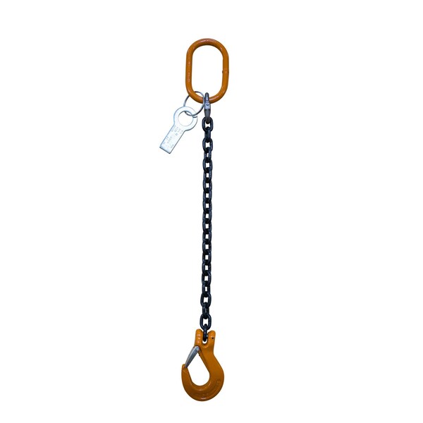The Starke Chain Sling will be able to handle all of your lifting needs with a working load limit of 7,100 lbs (3⁄8" chain). Grade 80. This chain sling has 1 leg and has a 12' reach. The hook type is a sling hook. No chain adjuster included.