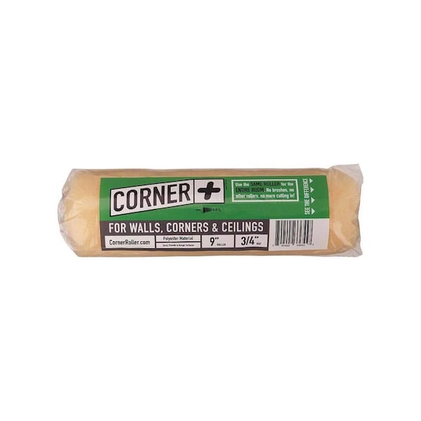 9in x 3/4in Nap, Polyester Roller Cover. An enclosed end enabling simultaneous use on adjacent walls and ceilings. Eliminates cutting in on corners of adjacent walls and can save up to 35% of the time it takes to paint an interior room. Ideal for semi-smooth surfaces. Plastic Sleeve Packaging.