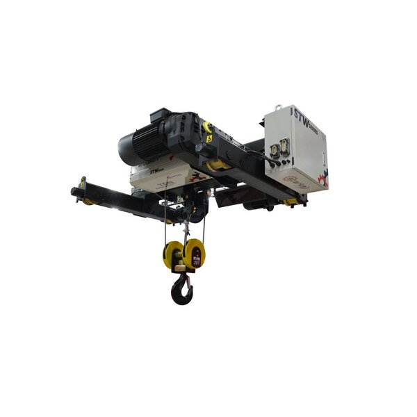 The Starke Top Running Wire Rope Hoist is a revolutionary way of heavy duty lifting. The lifting motor contains 2 lifting speeds 75/20 FPM which allows you to improve efficiency and precision. The rope drum is deeply grooved to ensure optimal rope line arrangement, allowing for better safety and durability. This hoist is equipped with overload protection and a 360 swivel hook. H3 Rated. 20 Ton capacity and 30' lift.