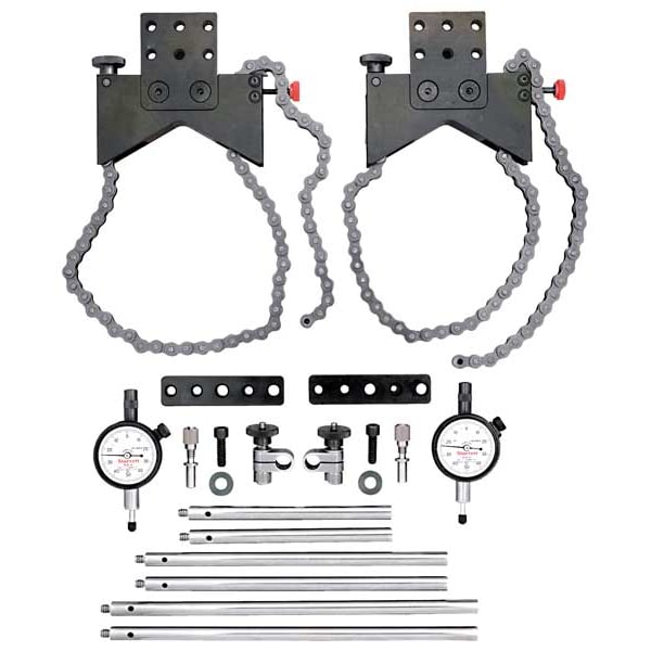 Shaft Alignment Clamp Set, Alignment Distance - Maximum 7 1/2 in, Beam Color Not Applicable, Clamp Material Aluminum, Compatible Shaft Diameter - Maximum 7 1/2 in, Dial Reading 0-50-0, Includes Case, Chain Clamp, Extension Plate, Posts, Indicator Post Diameter 3/8 in, Indicator Post Length 9 in, Indicator Post Material Stainless Steel, Indicator Type Dial, Number of Clamps 2, Number of Indicator Posts 3, Operating Temperature - Maximum 114 Degrees F, Operating Temperature - Minimum 30 Degrees F
