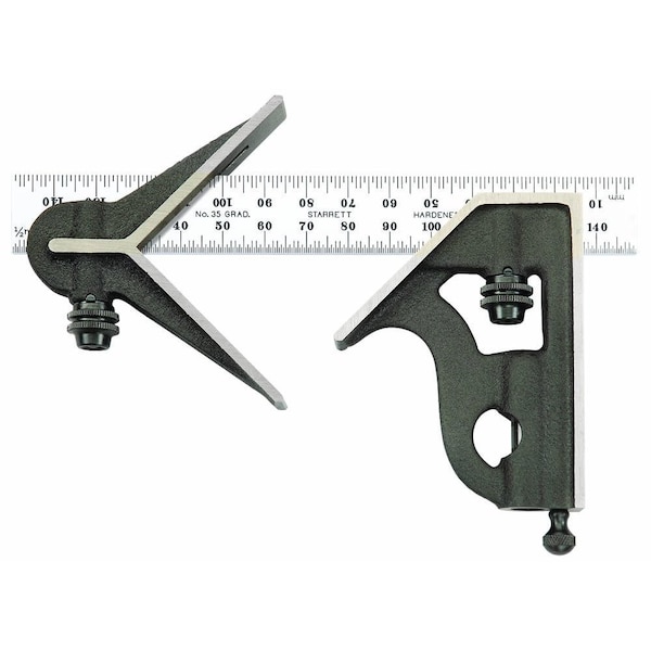 Combination Square, Number of Pieces 2, Blade Finish Satin, Blade Material Steel, Head Length 3 in, Head Width 9/16 in, Blade Length 11 13/16 in, Blade Thickness 0.08 in, Blade Width 3/4 in, Graduation Mark Style Etched, Graduation Marks - Front 1/2 mm, Head Type Square, System of Measurement Metric, Head Material Cast Iron, Head Vial Included Yes, Accuracy +/- .0025 in, Features Reversible Lock Bolt, Graduation Color Black, Graduation Scale 35, Graduation Units Millimeters, Head Color Black