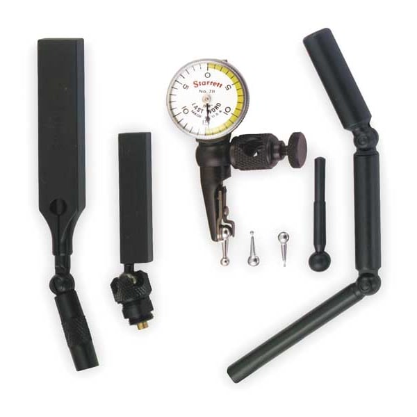 Item Swivel-Head Dial Test Indicator, Range 0 in to 0.03 in, Graduations 0.0005 in, Long Form Calibration Certificate No, Contact Point Dia. 0.12 in, Dial Color White, Yellow, Dial Reading 0-15-0, Dial Size 1 in, Dimension Type Inch, Includes Dovetail Mount Attachments No, Maximum Measurement - Inch 0.03 in, Minimum Measurement - Inch 0 in, Number of Indicators 1, Operation Type Lever-Style, Range per Revolution 0.03 in, Series Starrett 711, Test Indicator Style Swivel Head, Accuracy 0.001 in