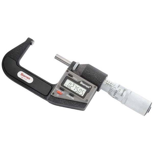 When you need a reliable micrometer, the Starrett 3732XFL-2 Electronic Micrometer is the ideal choice. It has an accuracy of +/-0.0001 in., and its resolution measures 0.00005"/0.001mm.. The electronic micrometer has a range of 1 to 2", and can measure objects as small as 25.4 mm. This digital micrometer comes with a knurled ring lock nut for superior control when adjusting it to your desired measurements. Featuring a flat spindle, this unit also has anvils made from carbide that are both durable and accurate. For easy viewing, this electronic micrometer features large LCD digits that are backlit by LED lights for increased readability even in dimly lit conditions. With its superior durability and quality performance, the Starrett 3732XFL-2 Electronic Micrometer is perfect for your measuring needs.