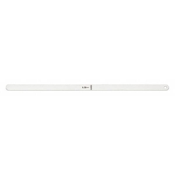 Feeler Gauge, Blade Length 300 mm, Blade Material Steel, Blade Style Long Blade, Blade Width 1/2 in, Dimension Type Metric, Non-Magnetic No, Thickness 0.50 mm, Finish Uncoated, Markings Metric