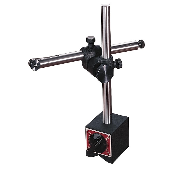 Magnetic-Base Indicator Holder, Arm Type Rigid, Base Height 2 3/8 in, Base Length 3 in, Base Size 3 in L x 2.375 in W x 2.375 in H, Base Type Magnetic, Base Width 2 3/8 in, Compatible Indicator Mounts Lug On Back, Fine Adjustment Position Fine Adjust Top (FAT), Holding Power 150 lbf, Maximum Reach 15 in, Step Type V Step, Working Length of Post/Lower Arm 9.375 in, Working Length of Snug/Third Arm 1 in, Working Length of Upper Arm 9.375 in, Base Thread Size 1/4 In.-20, Construction Cast Iron