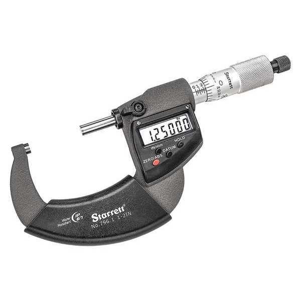 When you need a micrometer that can provide accurate measurements, the Starrett 796.1XRL-2 Electronic Micrometer is the tool to turn to. It comes with an IP67 rating, which means it is protected against dust and water. This electronic micrometer has a 1 to 2" range and features a flat spindle and ratchet thimble for ease of use. The lock nut is lever type and the carbide anvil has a flat shape. The dimension type is inch/metric and the anvil shape is flat. This Starrett Electronic Micrometer will meet all your measuring needs in one convenient package.