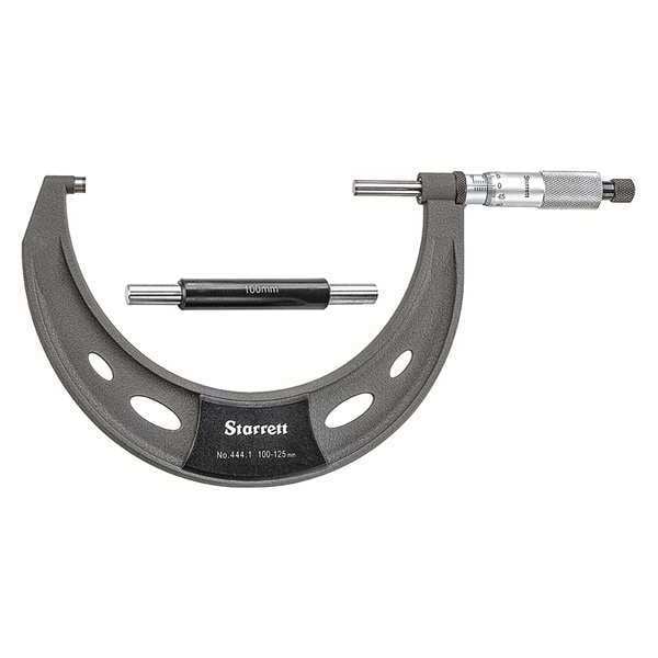 Mechanical Outside Micrometer, Range 100 mm to 125 mm, Resolution 0.01 mm, Accuracy +/-0.002 mm, Long Form Calibration Certificate No, Dimension Type Metric, Included Certification Not Included, Mechanical Display Type Vernier, Operation Type Mechanical, Thimble Type Ratchet, Anvil Material Carbide, Anvil Shape Flat, Case Included Yes, Includes Adjustable Wrench, Case, Lock Nut Type Ring, Maximum Measurement - mm 125 mm, Minimum Measurement - mm 100 mm, Rotating Spindle (Yes/No) Yes