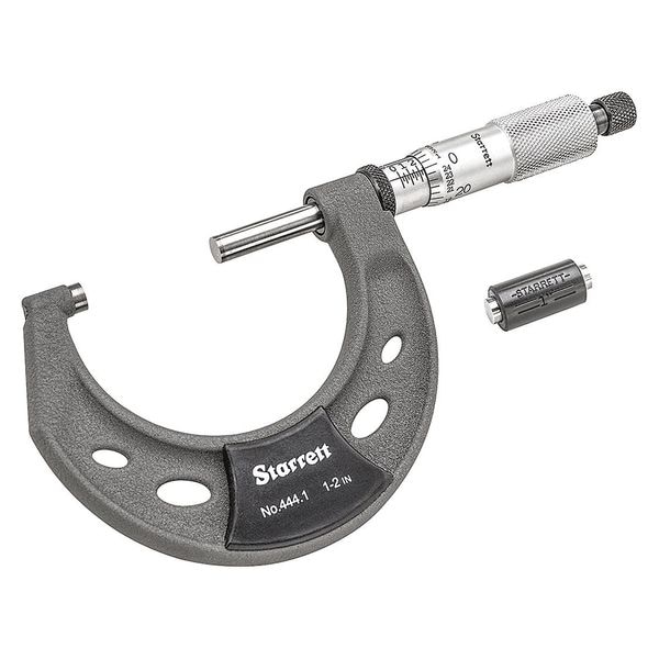 The Starrett T444.1XRL-2 Outside Micrometer is a high-quality tool that measures to within 0.0001" with a flat anvil and carbide face. The micrometer has a range of 1" to 2", making it suitable for measuring the outside diameters of cylinders, discs, etc. It also features a knurled ring lock nut which is easy to tighten and loosen when needed. This high quality tool has a ratchet thimble which allows you to precisely adjust the pressure applied by your hand on the spindle as you take measurements. With its excellent accuracy and functionality, this Starrett Outside Micrometer will prove invaluable in all your projects.