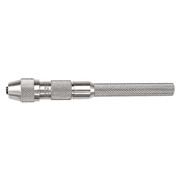 Pin Vise, Material Steel, Finish Nickel Plated, Grip Shape Round, Grip Style Knurled, Maximum Size - Inch 0.2 in, Maximum Size - mm 5.1 mm, Minimum Size - Inch 0.11 in, Minimum Size - mm 2.8 mm, Number of Pieces 3, Range - Inch 0.11 in to 0.2 in, Range (mm) 2.80 mm to 5.1 mm, Single End or Double End Single End, Application Holds Wires, Scriber Points, Small Files, Taps and Drills, With Swivel Head No, Overall Length 4 9/64 in