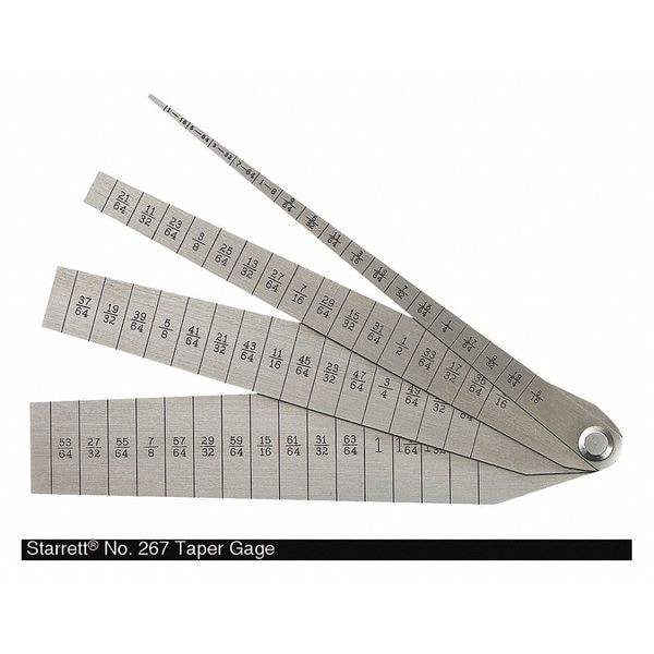 Taper Gauge Set, Range 1 16 in to 1 1/16 in, Resolution 1/64 in, Graduations 1/64 in, SPC Output No, Material Tempered Steel, Dimension Type Fractional Inch, Gauge Style Flat Leaf, Number of Leaves 4, Operation Type Mechanical, Finish Uncoated, Overall Length 5 1/4 in