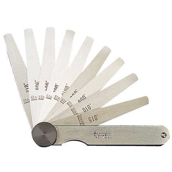 The Starrett 173MAT Thickness Gage is a versatile tool that allows you to check the thickness of metal, sheet and wire. This feeler gauge set is an excellent choice for your industrial or home needs. It comes with a thick blade design that gives it the ability to measure thicker material. The Starrett 173MAT Thickness Gage has blades made from tempered steel and offers a range of 0.03 mm to 0.50 mm in thickness. Its special features include a taper gauge blade and two specialty blades, which are necessary for specific measurements such as measuring the distance between parallel surfaces and checking the depth of recesses on flat surfaces. With its quality construction, there's no doubt you will want to have this Starrett 173MAT Thickness Gage at hand when you need it most.