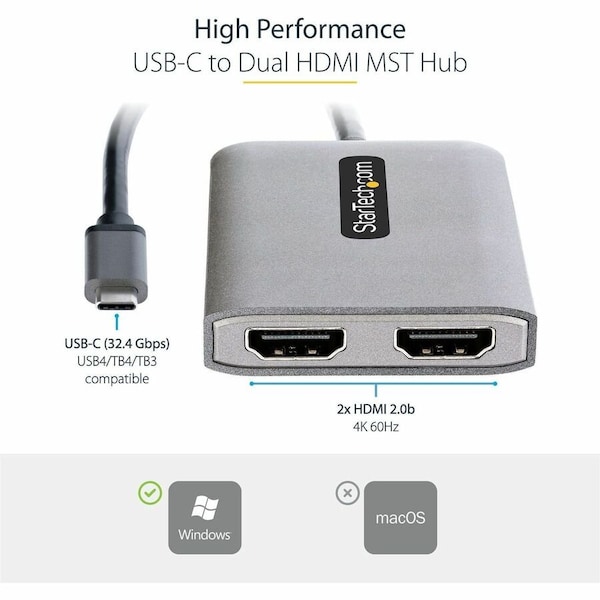 USB-C TO DUAL HDMI MST HUB FOR 2X 4K 60HZ DISPLAYS; DISCRETE GPUS/12TH GEN AND U